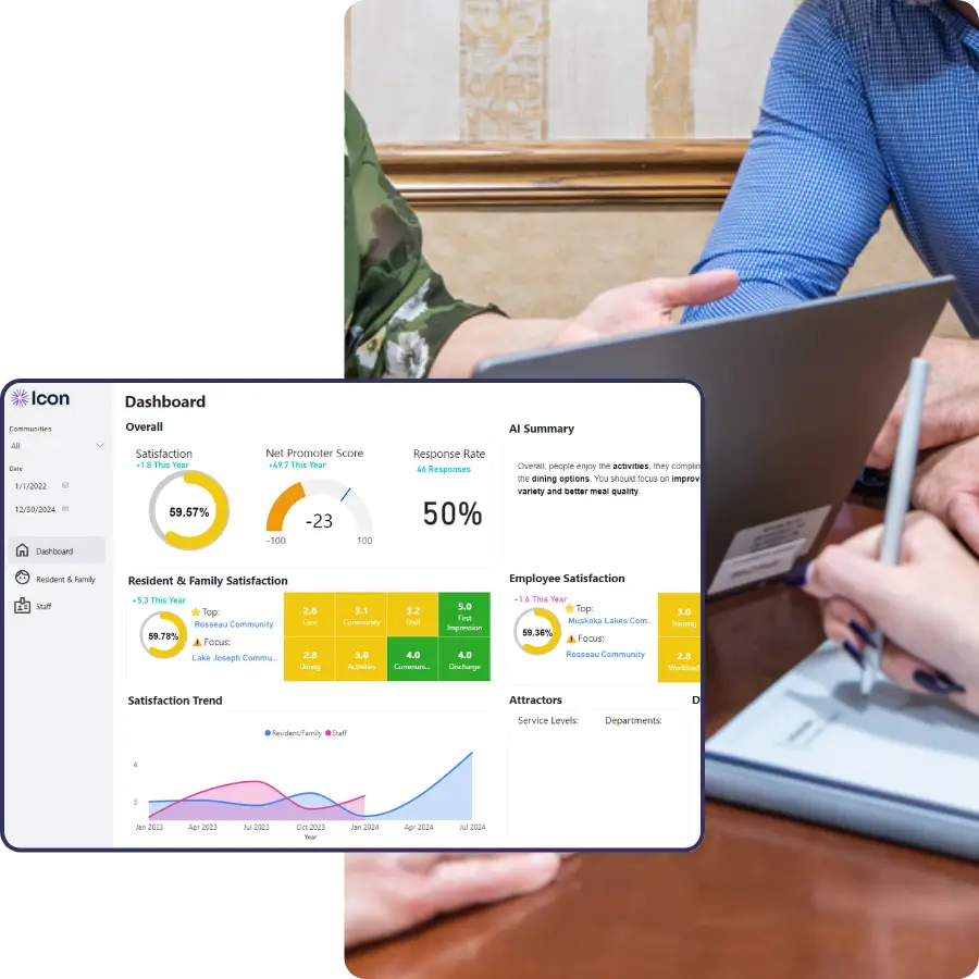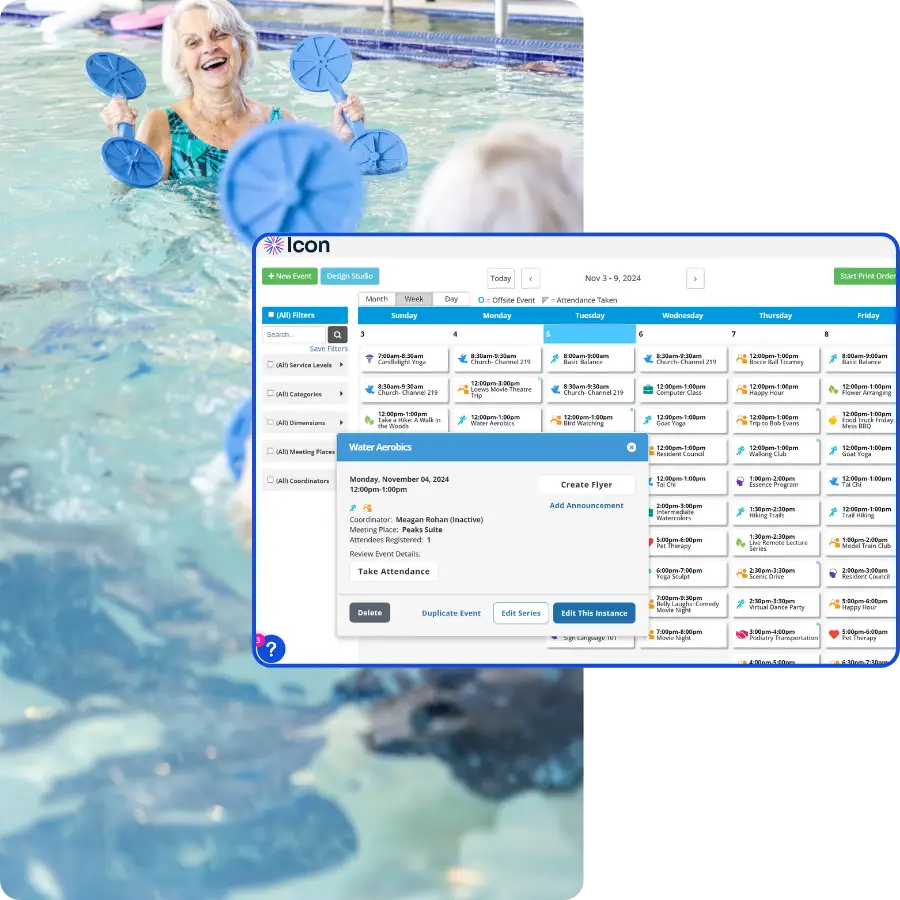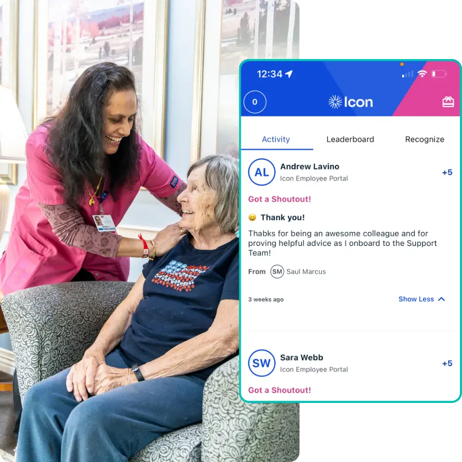 Go Icon makes it easy to delight residents, family, staff, and prospects by giving you access to robust engagement calendar functionality, engaging communication features and powerful insights. Using Smart Aging™ AI, Icon’s configurable platform seamlessly adapts to every living setting and community.Â